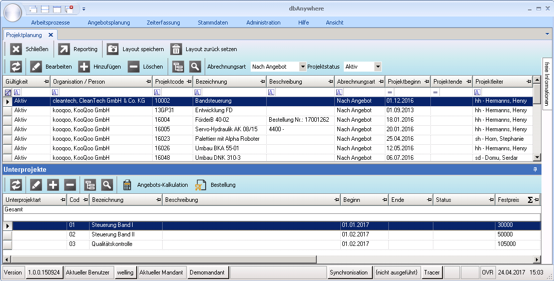 Die Lösung der Angebotsverfolgung hat sehr viele Anwender mit stark unterschiedlichen Anforderungen. Der administrative Teil des Arbeitsprozesses hat zu diesem Zweck eine eigene Applikation erhalten.